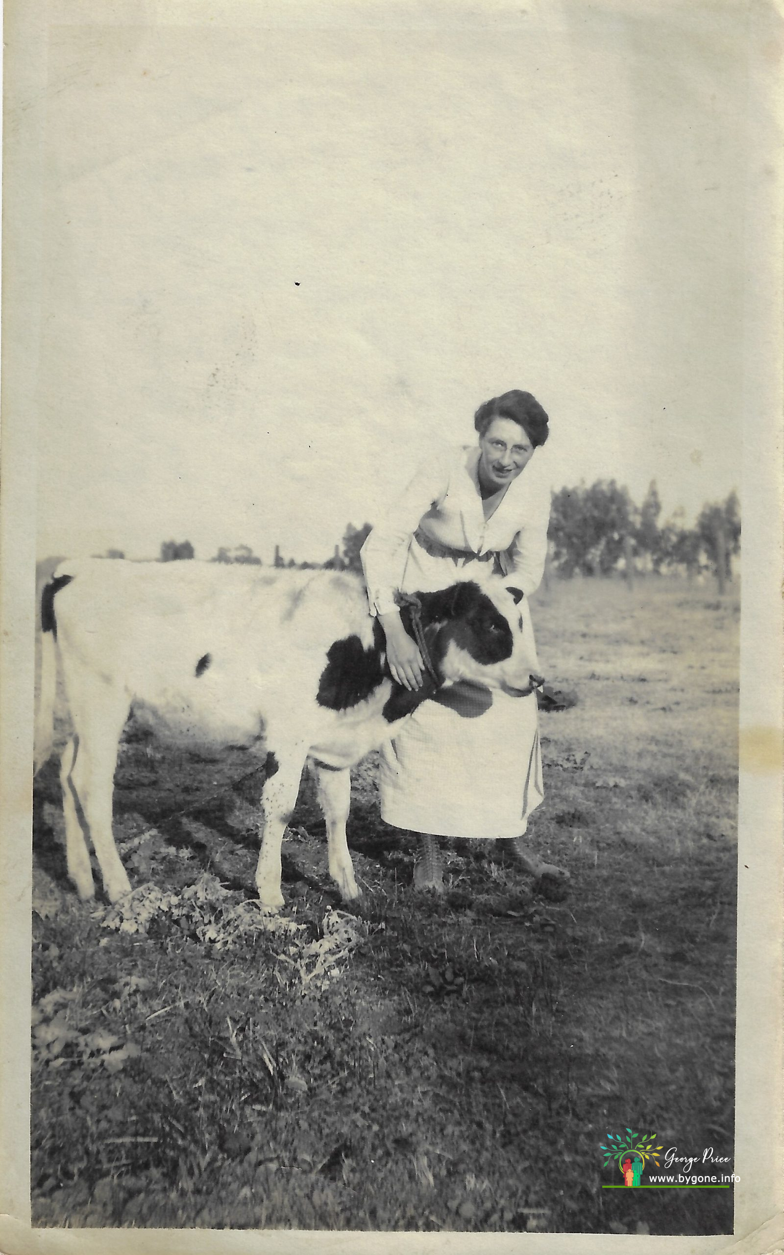 Written on back: “The girl in this picture took these. Her and her three brothers run the farm house. Thay are very nice people.”