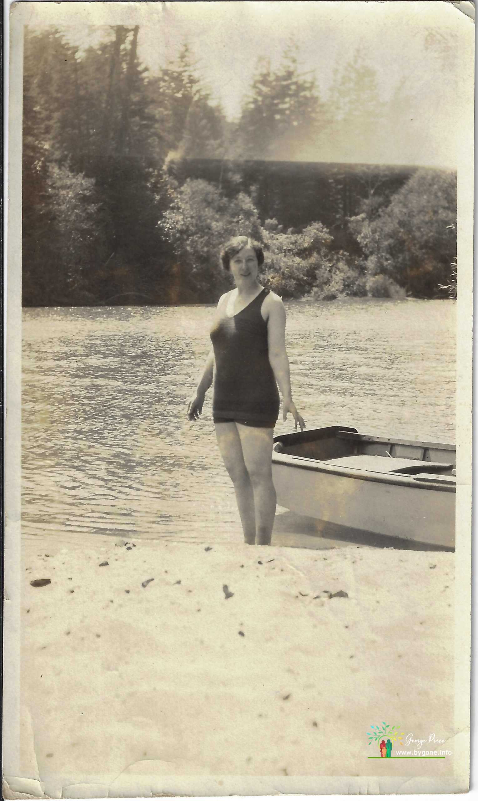 Written on back: “This was taken in June when I spent a week here. THis is a private beach belonging to Mr McNear. I can walk out of the house and into the water, and back with nobidy seeing me.”