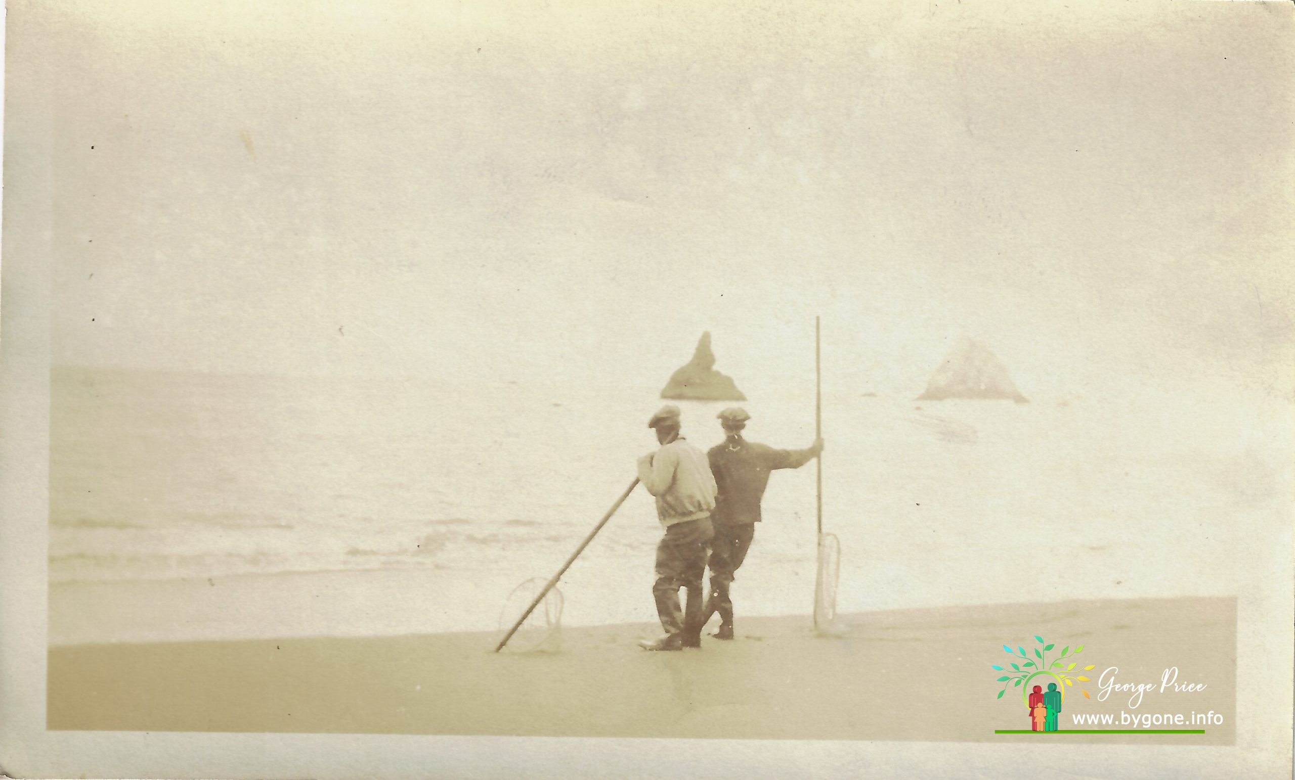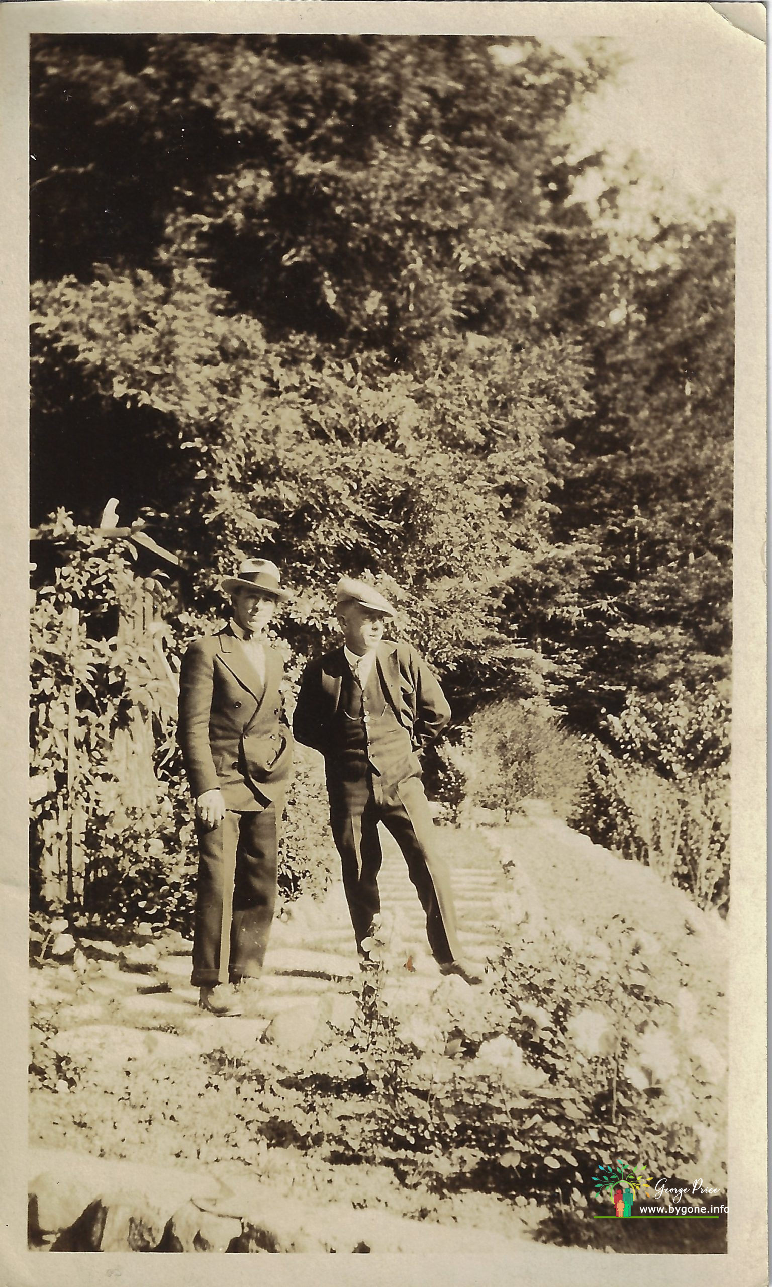 Written on back: “Walter & Harry. Taken at Jenner by the Sea. This is where they surf fish. Maud and I would like to know what they are thinking about.”