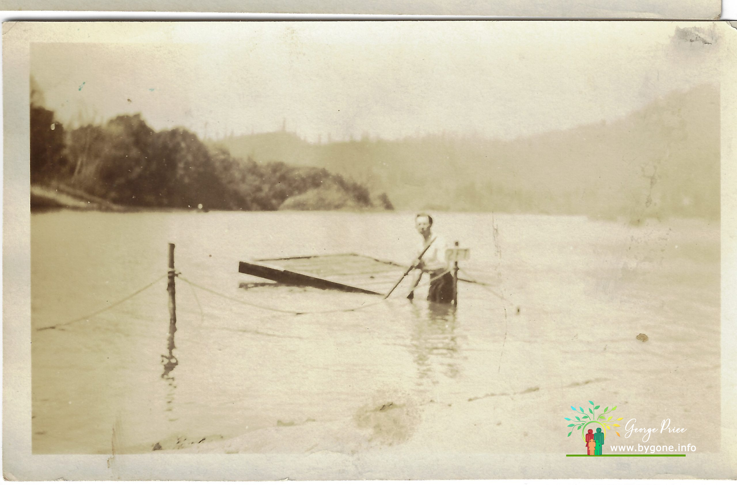 Written on back: “This was taken over at the country we are having a fine time to steady the boat”