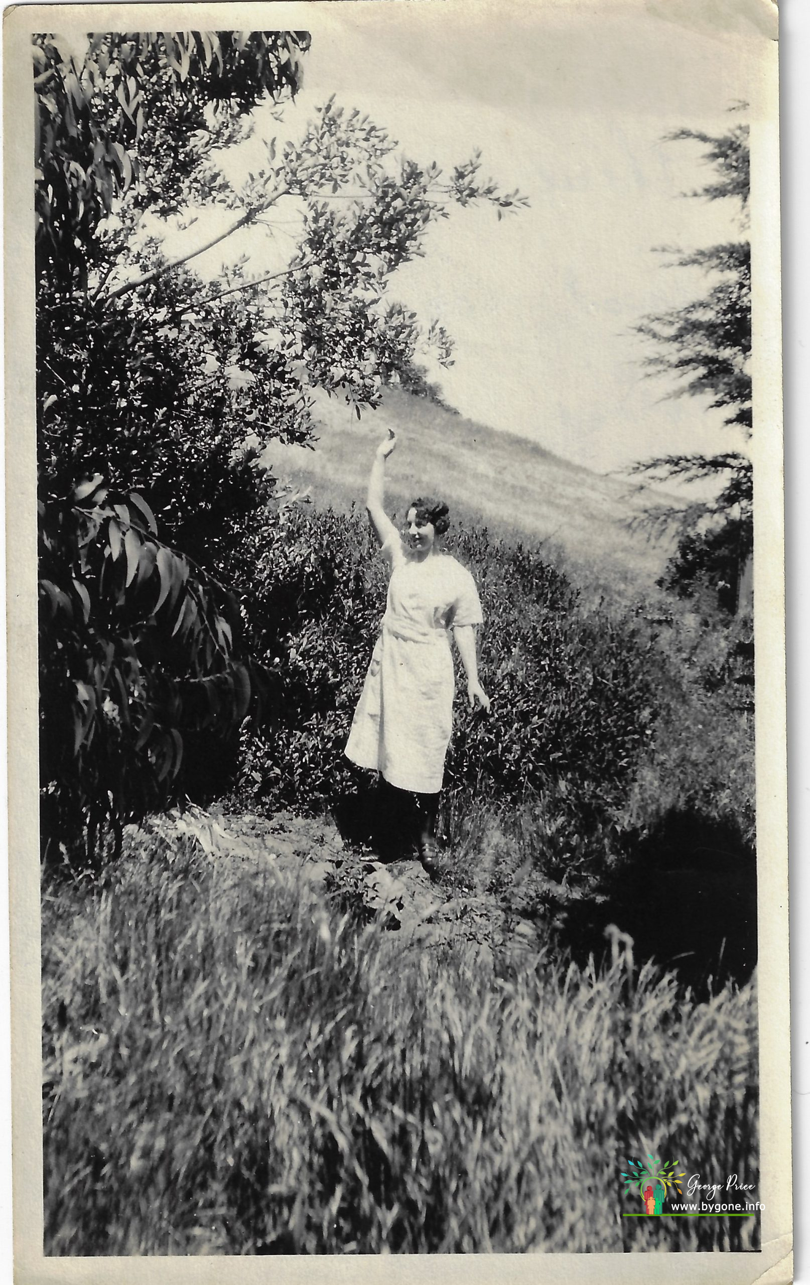 Written on back: “My Dear Mother, I am longing for a letter having had none for six weeks. I have written Minnie a letter and have no more paper left, so I am sending a few pictures. This one was taken when I was on my holiday. Wal took it with the camera. We are both well. Hoping when this reaches you to find you well. We Remain your loving Son and Daughter. Wal and Tee”