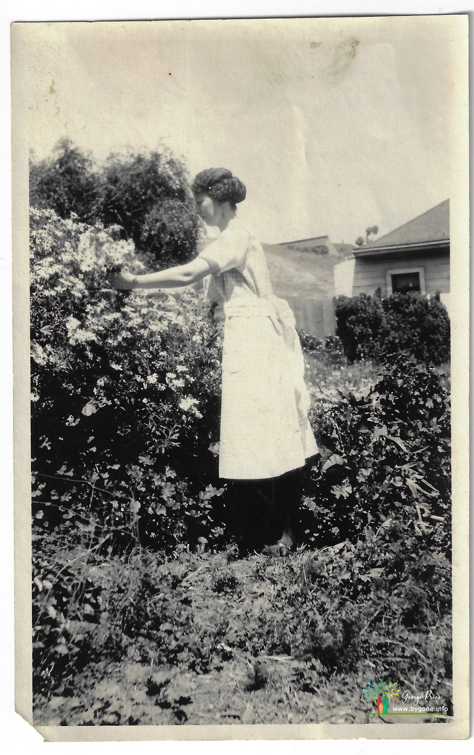 Written on back: “Walter always insists on a close up of me. But I don’t like them. I look so old. But he says the camera don’t lie so I must really be gettting old. 30 this birthday.”