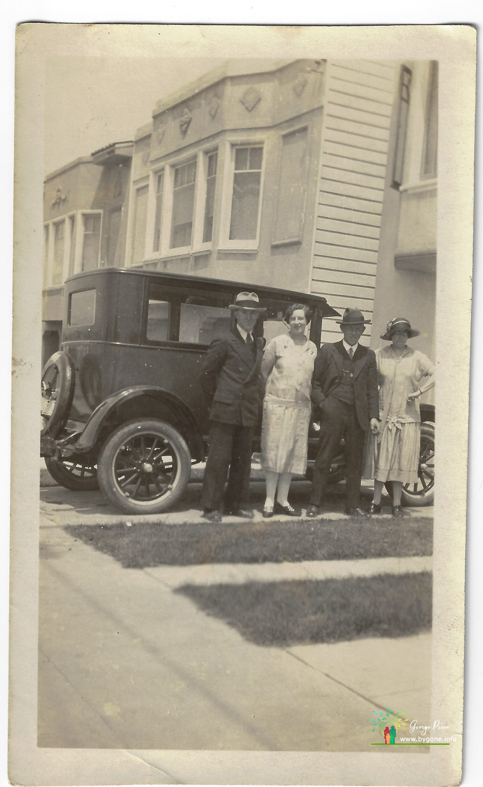 Written on back: “This is Mr and Mrs Roberts, Walter & I taken the last time we went to the city. That is Maud’s house the back of the car also her car.”