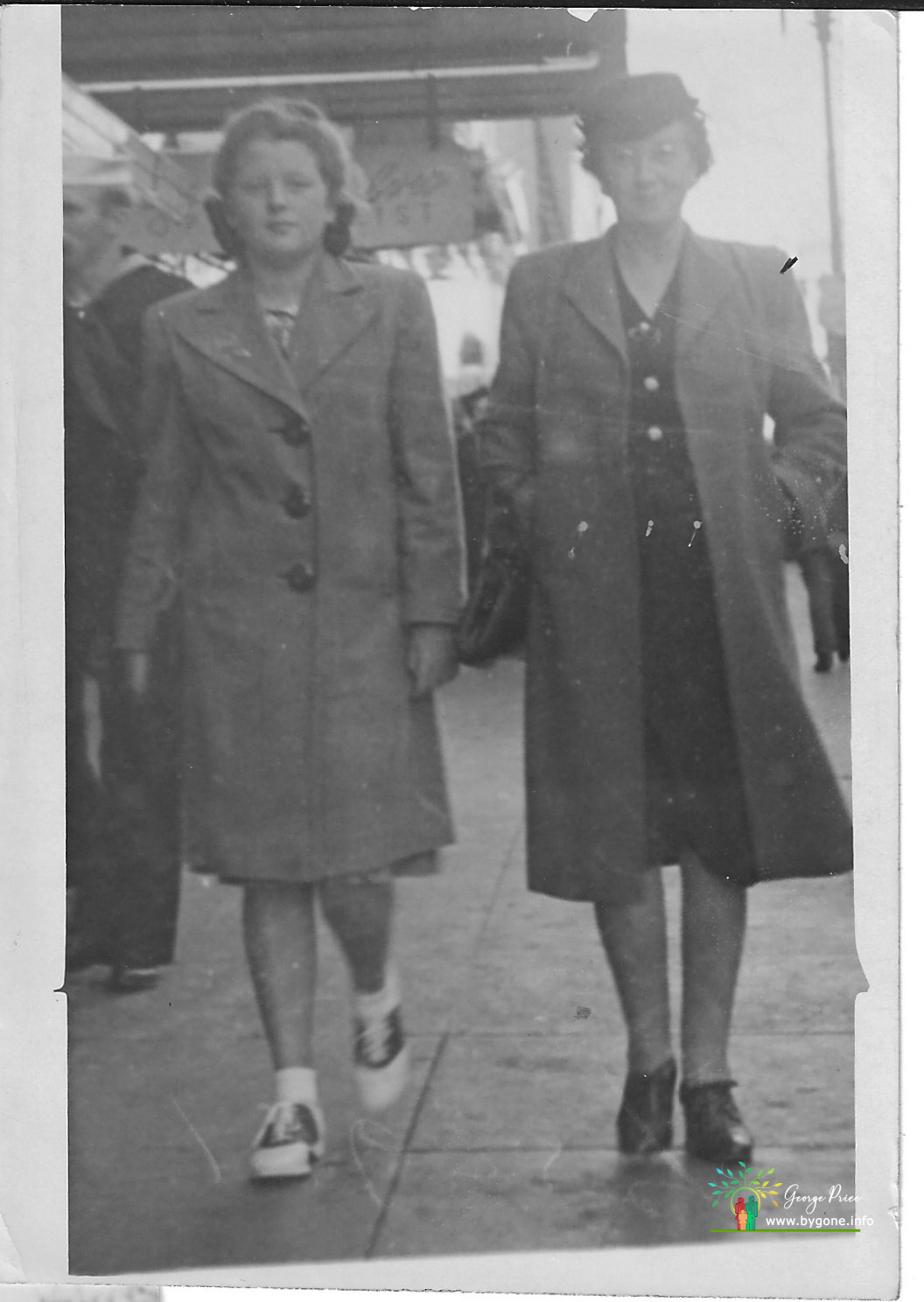 Written on back: “This is a very poor one of Helen & I, Taken in San Francisco. But she wants to send it. It was taken one Saturday when we were down town shopping.”