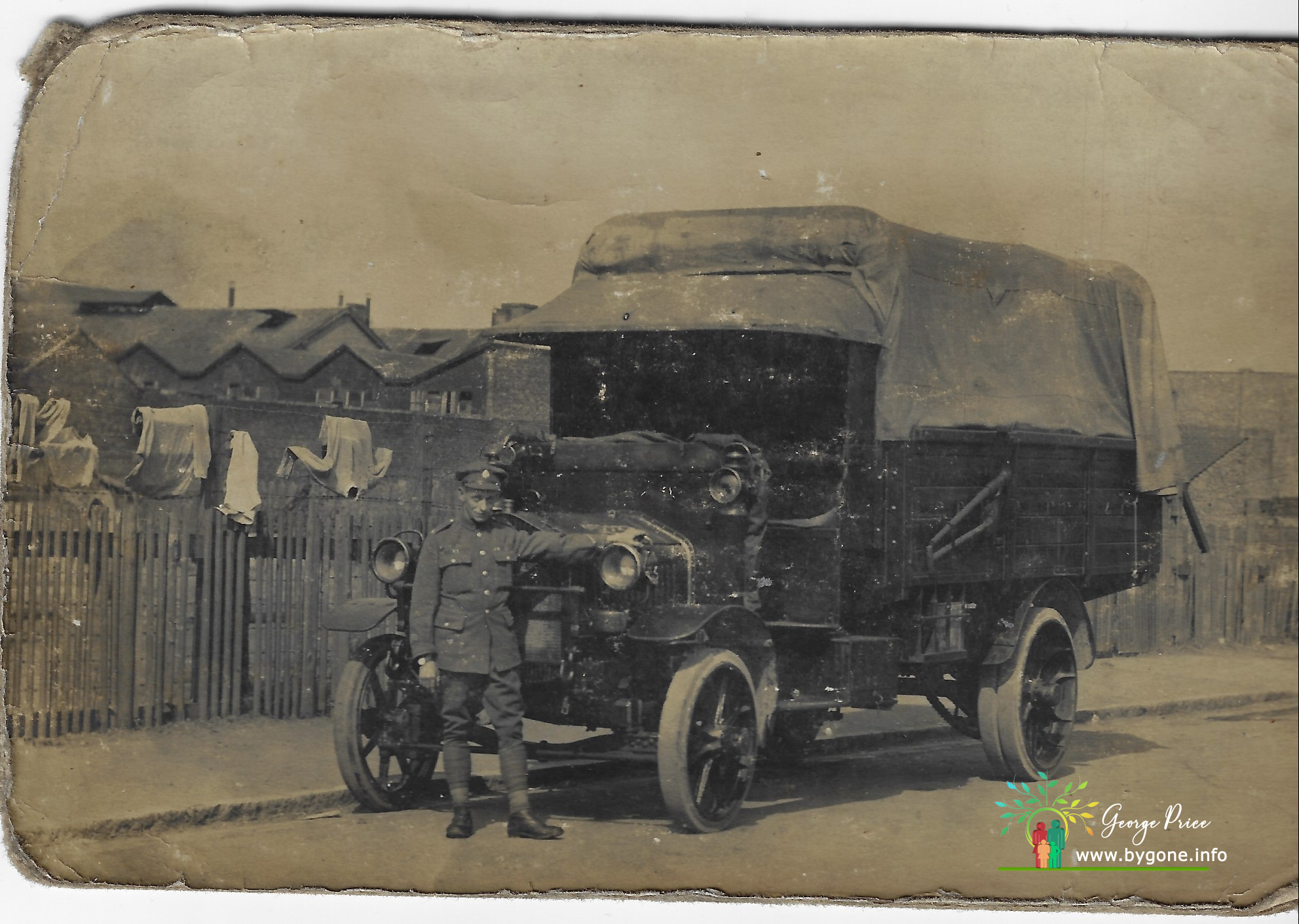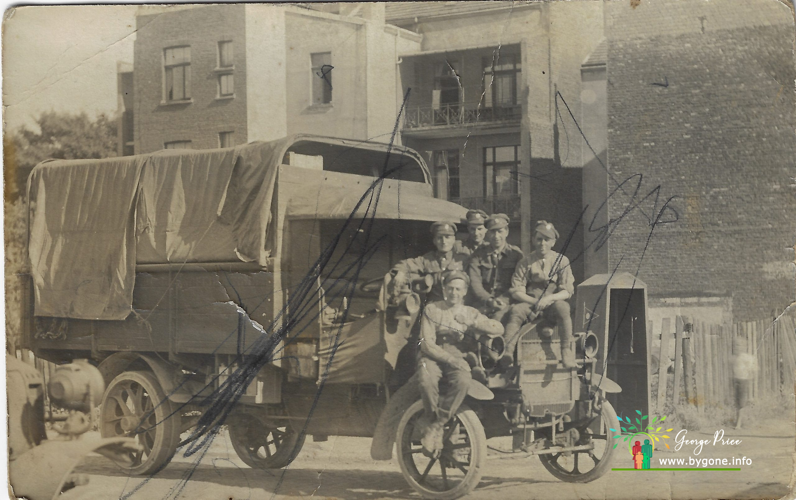 “”I daresay you will be able to find me on here if you look. There is only four of us here that came to this company together and the dog, he has been with us for over two years so he is our mascot and the lorry is a German one which has been handed over. John””